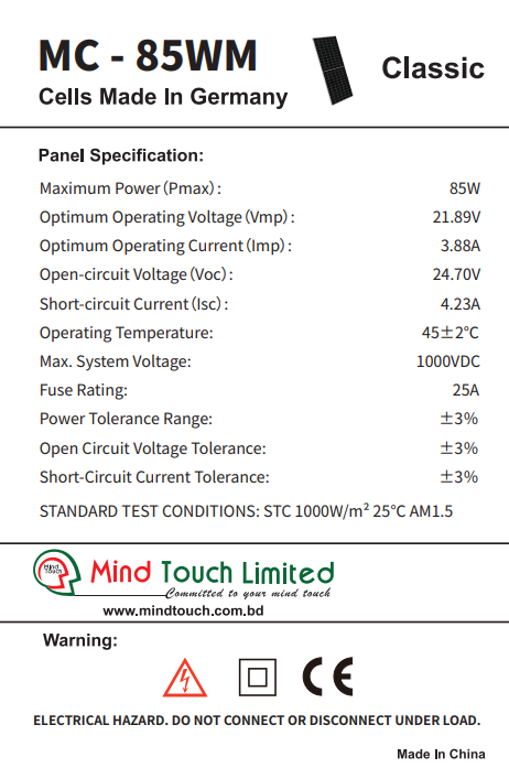 Mind Touch Solar Panel-85 Watt